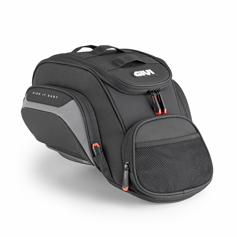 Geantă de rezervor cu sistem Tanklock, concepută pentru a se adapta rezervoarelor puternic înclinate, tipice motocicletelor maxi enduro. Oferă o potrivire perfectă formei vehiculului, versatilitate și stabilitate maximă chiar și în condiții dificile de condus.